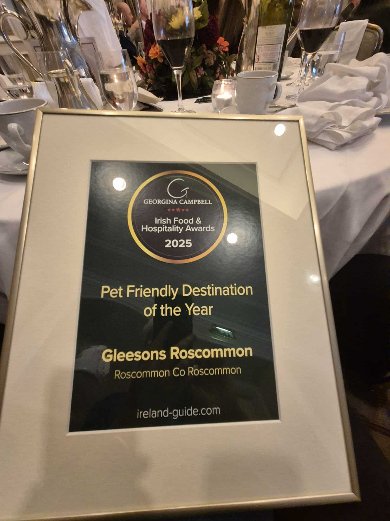 PET FRIENDLY DESTINATION OF THE YEAR 2025: Gleesons Roscommon, Co Roscommon