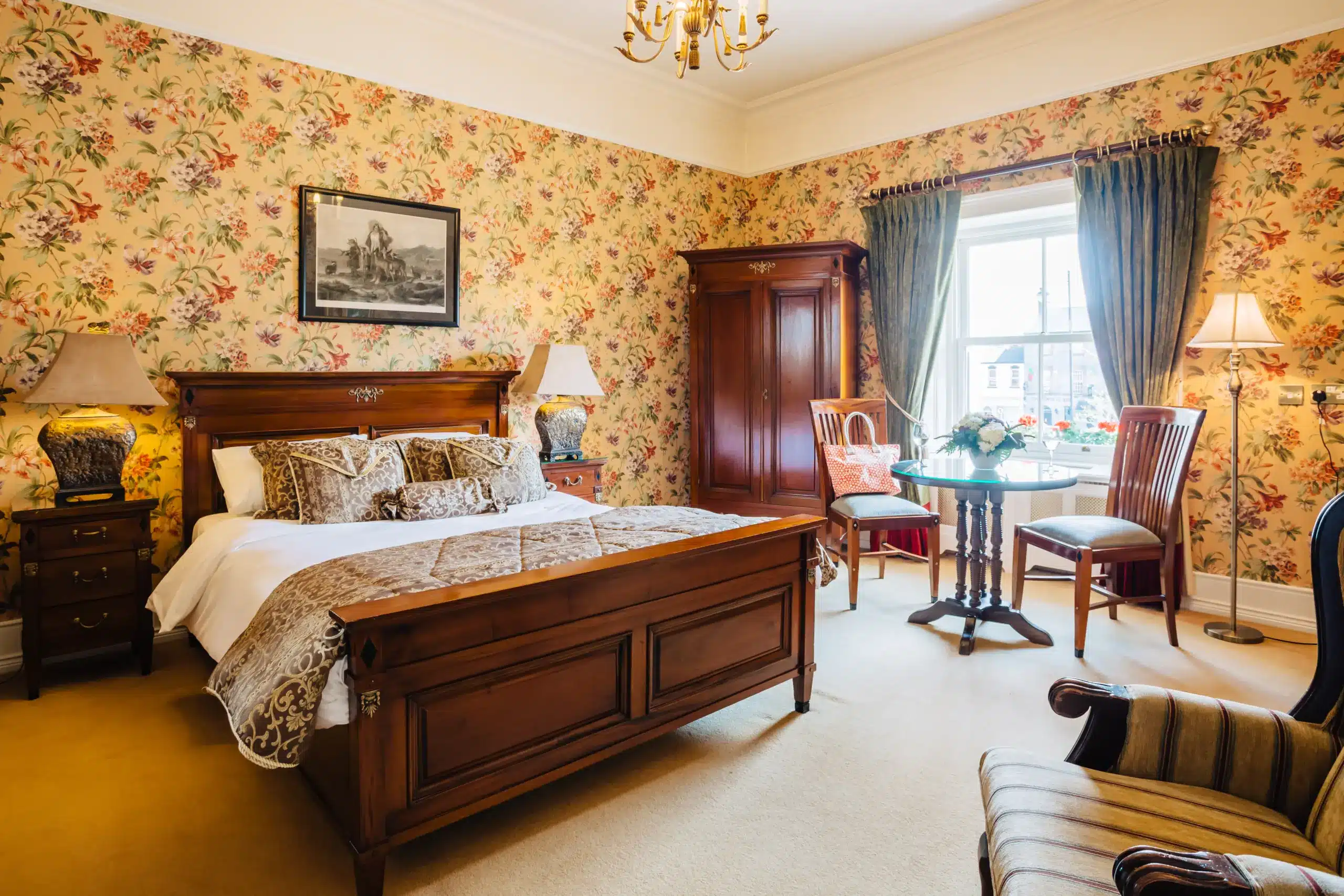 The Harrison Suite is a lovely period room featuring a king size bed and ensuite bathroom with bath and shower plus Gilchrist & Soames toiletries, complimentary Wi-Fi, digital TV, telephone and trouser press. Dogs are not permitted in the Harrison Suite